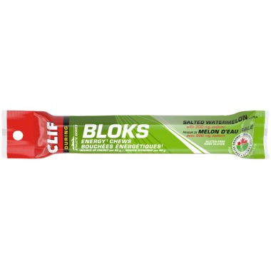 Clif Bloks Energy Chews Salted Watermelon A refreshing sweet and salty combination with 2x sodium for your electrolyte needs.