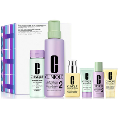 - Clinique's signature 3-Step skincare, in full and travel sizes to give drier skin exactly what it needs to be great skin.