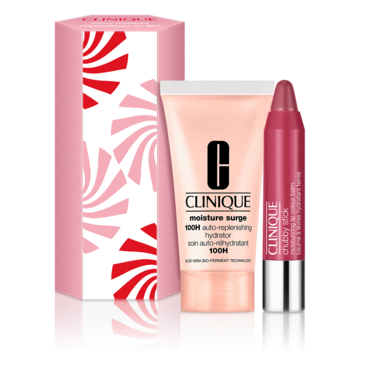 Moisture Surge™ 100H Auto-Replenishing Hydrator with hyaluronic acid and activated aloe water helps give skin the power to rehydrate itself, even after you wash your face. Moisturizer provides 100 hours of nonstop hydration that deeply penetrates and delivers an instant moisture boost. Chubby Stick™ Moisturizing Lip Colour Balm nourishes lips, with vitamin E and mango and shea butters, plus leaves a sheer, natural-looking tint.