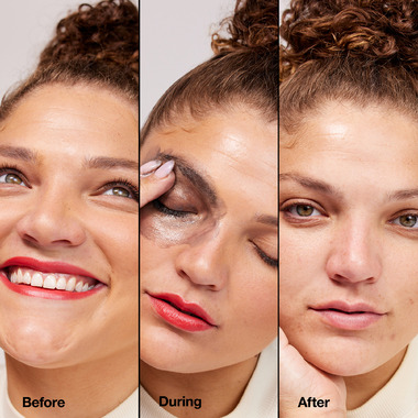 Lightweight makeup remover quickly dissolves tenacious eye and face makeups, sunscreens.