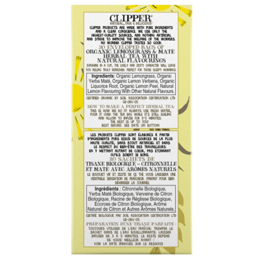 Organic lemongrass & mate herbal tea with natural flavourings.