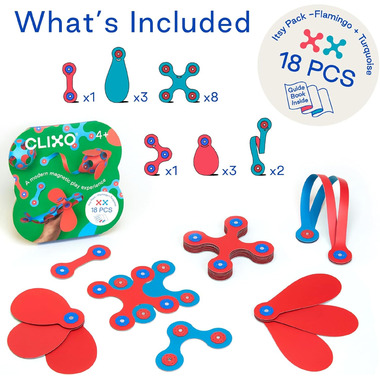 The 18-piece pack offers unlimited possibilities! Clixo’s patented design allows kids to construct complex creations with fewer pieces, encouraging them to fold, flip, and connect for maximum creativity. A quick start guide helps build their first five exciting designs, while intuitive magnet feedback lets them know each piece is securely in place.