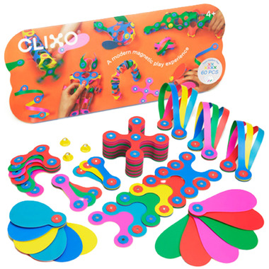 Step up your Clixo game even more with the perfect pack for multiple wild and colorful imaginations! A super rainbow of possibilities with 60 pieces in 8 different shapes, including 21 quads. With this pack more kids can be engaged and captivated as they build hanging, curving, or wearable creations!