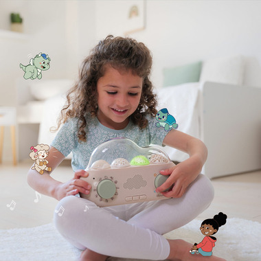 Cloud Box creates an immersive experience mixing stories, soothing sounds and smooth projections around 4 universes: Ocean, Forest, Space, City. Cloud.Box helps to soothe babies by making the bedtime ritual a pleasant and a comforting moment and immerses children into magical worlds by developing their imagination. An illustrated story book is included with My First Dream Box!