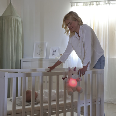 Toddlers have a strong need to be reassured and to feel the warm presence of their caretakers. The new LoveLight Buddies were inspired to help fulfill this need. This multisensory product has soothing sounds, calming lights, and a soft touch to help provide this calming effect. In addition to the 4 melodies and 4 white noise, the LoveLight Buddiesٙ have a recording function so parents can leave a sweet message or sing their child's favorite lullaby, and light up with a warm glow that gently pulses. An innovation for the well-being of little ones... and the whole family.