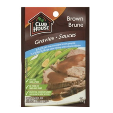 Contains 25% less salt than regular Club House Brown Gravy & delivers the same roast meaty taste.