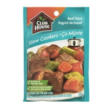Combine your favourite cubed fresh vegetables, boneless stewing beef and the seasoning mix in your pot, put the lid on and let your slow cooker do the rest! Cooks in 8 hours on LOW or 4 hours on HIGH. Try adding tomato juice in place of the water for even more flavour.