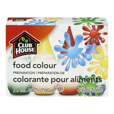 Suggested Uses: Directions: Gently squeeze or tap bottom of bottle adding color drop by drop to obtain desired shade. To Colour Eggs: Combine 1 tsp (5 mL) vinegar, 1/2 cup (125 mL) boiling water and colour, as follows: For blending shades, see chart and multiply the numbers of drops by three. For single colour add 20 drop of colour. Dried colour will not rub off.