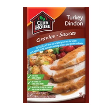 Contains 25% less salt than regular Club House gravy mix for Turkey & has the same meaty roast gravy and poultry-style herb flavour.