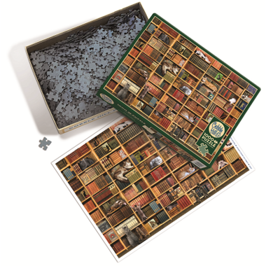 Curl up with a good book and a cuddly kitten in this 1000 piece puzzle. Friendly felines frolic on the shelves of Cobble Hill's favourite local book store- thanks to Russell Books in Victoria, BC for the use of their bookshelves!