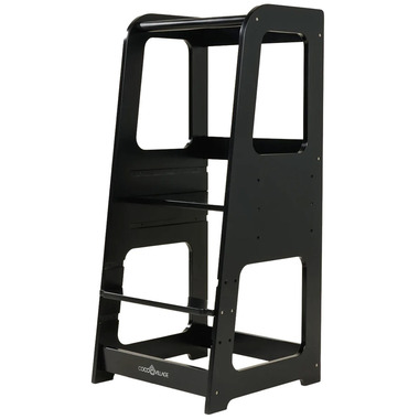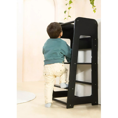 Made of solid Birch wood and plywood, it is designed to allow your little ones to climb in and out of the tower by themselves using the adjustable step (3 different heights). The Educational Tower features an adjustable platform so it fully grows with your little partners.