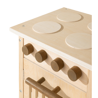 The simple, minimalist design of the Mini Wooden Play Kitchen gives it a refined look, while retaining the details and features that make it so great! All that remains is to combine it with the various complementary accessories to complete the set!