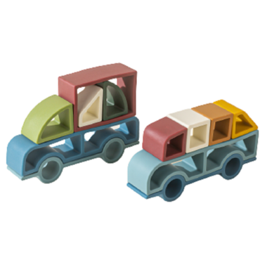 The Set of 2 Silicone Stackable Cars greatly contributes to the motor development as well as the coordination of infant. This first exploration for babies will help them discover the world around them, and it is through their senses that they will learn about shapes, colors and textures.