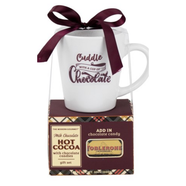 Milk chocolate hot cocoa with chocolate candies gift set. Add in chocolate candy toblerone.