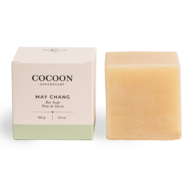 Ingredients: Saponified oils of olive, sweet almond, coconut, cocoa butter, shea butter, stearic acid, may chang essential oil.