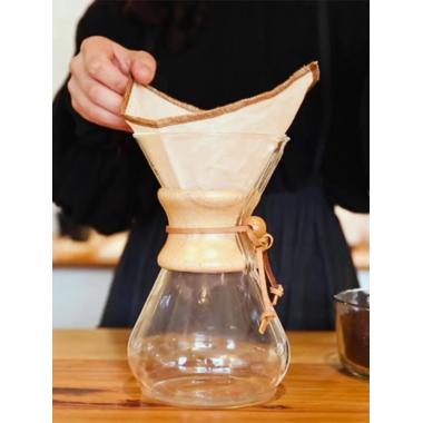 Using soft, organic cotton, this CHEMEX filter is hand-sewn in the USA. It fits on any CHEMEX (apart from the 3 cup pint size), and comes in a pack of two - so you've always got a spare. We love the difference this filter makes. Not only are you reusing your filter, you're also creating a totally different flavour profile than you would get with paper or metal filters. Cloth filters allow more oils through, and therefore give you more body - without sacrificing complexity.