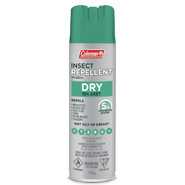 Enjoy the outdoors - maximize your Canadian summer experience with Coleman Aerosol Dry Insect Repellent with 15% DEET.