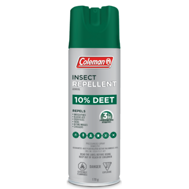 Enjoy the outdoors - maximize your Canadian summer experience with Coleman Aerosol Insect Repellent with 10% DEET.