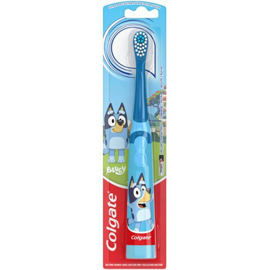 Colgate Kids Junior Bluey Battery Power Toothbrush provides a great clean and makes brushing fun for kids aged 3+, with its slim & lightweight design and extra soft bristles. It's great clean made fun!