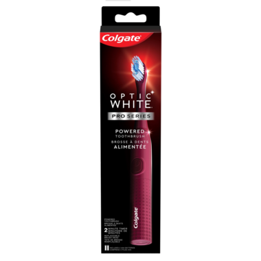Introducing the Colgate Optic White Pro Series Battery Toothbrush. With a rubber polishing cup that removes more stains for a bright smile, this sonic battery power toothbrush has a powerful, yet gentle clean.