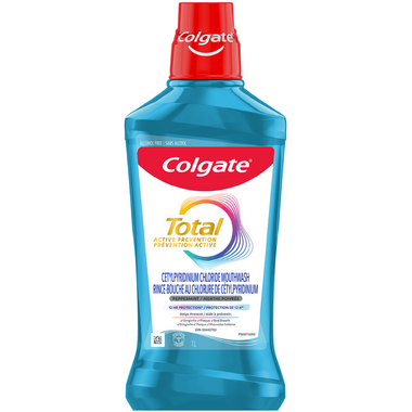 Colgate Total Mouthwash improves oral health by preventing and reducing plaque and gingivitis. Also helps fight cavities and remineralize enamel. Freshens breath and provides 12-hour protection against germs that cause bad breath, plaque and gingivitis. Even after eating and drinking!