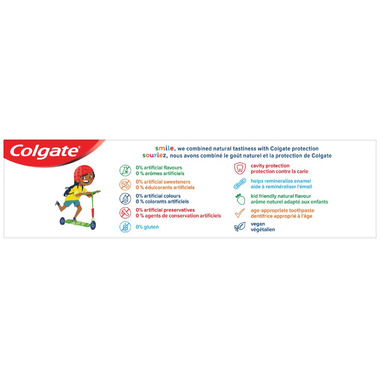 Colgate Zero for Kids 2-6 years Toothpaste is formulated with 0% artificial flavours sweeteners preservatives and colours. This toothpaste helps protect against cavities and remineralize enamel of little teeth.