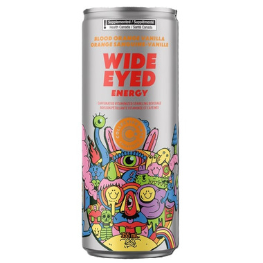 Collective Arts Wide Eyed Energy Orange Vanilla Caffeinated Energy Drink.  Contains 80mg of caffeine.