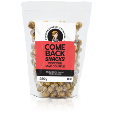 Comeback Snacks Double Coated Caramel Popcorn is a small batch snack in a resealable bag. "Popcorn so good, it's criminal".
