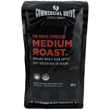 Established in East Vancouver, Commercial Drive Coffee Company The Drive Espresso Whole Bean Coffee is medium roasted in Canada with