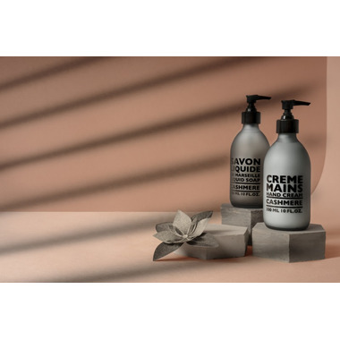 Compagnie de Provence Liquid Soap Cashmere is made in a traditional way. It is formulated with copra oil and organic virgin olive oil. It is naturally glycerined. It's sleek and frosted glass bottle creates an elegant atmosphere in which light and transparency are highlighted.