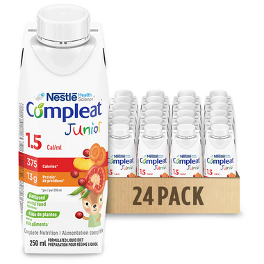 Compleat Pediatric1.5 is a 1.5 Cal/mL plant-based complete nutrition formula made with a variety of real food ingredients. For tube feeding or oral use. Use as directed by a healthcare professional.