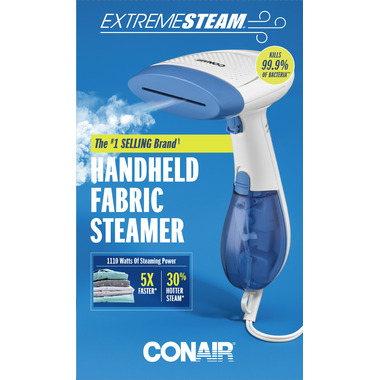 Say Hello to wrinkle free days with the Conair Extreme Steam hand held steamer. Great for quick on the go garment touch ups. Its faster and easier than ironing. Works on delicate fabric's, drapes, and upholstery too.