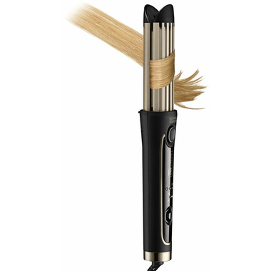 Quartz ceramic-coated plates provide effortless glide to form silky, smooth curls. Cool air flows outside the barrel, quickly setting your curl while protecting against damage.