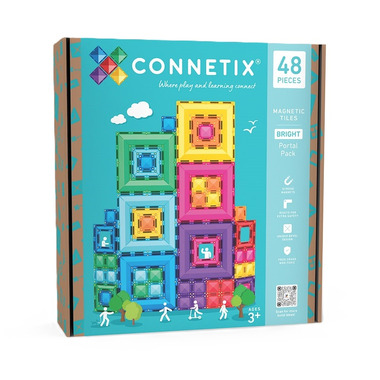 Step into a new dimension of creative play and explore the endless possibilities of the Portal range. Featuring 8 bright colors, this pack introduces three different sized squares which neatly nest together to level up openended play and STEM learning. The large and standard portal tiles feature unique open-frame design with multiple magnetic connection points on the inner and outer edges, while the mini-squares showcase Connetix Smart-Spin technology, allowing magnets to rotate within the tile to build in new directions. Mix and match pieces to create intricate designs, from houses and spacecrafts, to faces, tunnels, kaleidoscopes and more. The Portal range will inspire budding engineers, space enthusiasts, next-generation scientists and aspiring artists as they create, learn and play!
