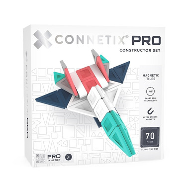 Build like a PRO with this advanced line of magnetic tiles specifically designed for critical thinkers and creators older builders. Introducing Connetix Smart-Spin technology - enabling ultra-powerful magnets to rotate 360 degrees within the tile and click into place allowing builders to construct in exciting new directions and angles to create the impossible. Offering an elevated experience from standard tiles, the PRO line gives designers the freedom to overlap, offset and stagger tiles to construct like never before. Engineer boats and robots, design interiors and furniture, create characters and creatures, plus so much more - this innovative line inspires the creation of more complex, detailed and functional designs.