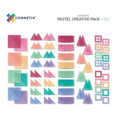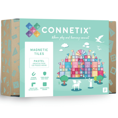 Designed to encourage hours of limitless creativity, fun and learning through PLAY, this Pastel Creative Pack features a variety of shapes in 8 pastel colours. It is a great starter option for family play, building BIGGER Connetix creations and expanding the range of colours your children recognize! Whether playing independently or with friends and family, the 120 piece Pastel Creative Pack encourages STEAM learning and the development of fine and gross motor skills.