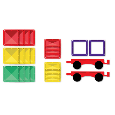 Switch imaginations into gear with our 24 piece Motion Pack. Featuring two car bases with REAL rubber wheels and unique bevel design, this pack also includes a variety of tiles and is the perfect gift for vehicle enthusiasts. The Motion Pack provides endless possibilities as a standalone, starter or expansion pack and encourages children to explore concepts of movement and motion, magnetism and color while they build limitless vehicles.
