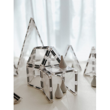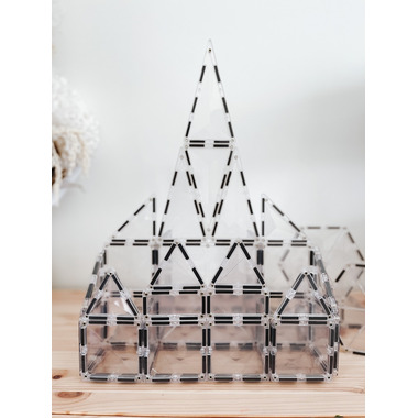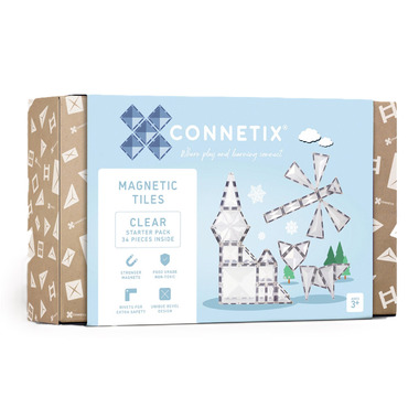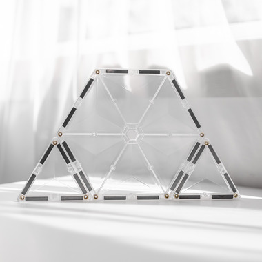 Enter a dazzling world of infinite possibility and imagination with their Clear 34 piece Starter Pack. Featuring transparent bevelled magnetic tiles in a variety of shapes (including large hexagons!), this pack will allow you to see through to a whole new dimension of Connetix play. Unleash your creativity to construct inspired designs from Frozen castles, glistening snowflakes and icy igloos, to functional windows, crystal glasshouses or pretend glasses.