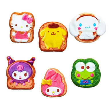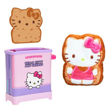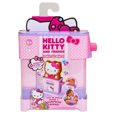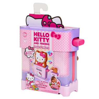 Which surprise plush friend will pop up out of the Cookeez Makery Hello Kitty and Friends Toasty Treatz Toaster? First, pop the bread into the toaster slot, then slide the toy toaster's handle down. Now slide the handle back up to reveal the cutest Hello Kitty and Friends Toasty Treatz surprise plush. Toasty Treatz are soft, squishy and deliciously scented collectible plush in the shape of Hello Kitty and Friends adorable breakfast treats. Which one will pop up? Now with new characters to collect. There are 6 scented Hello Kitty and Friends Treatz for kids to collect. Toasty Treatz can't wait to pop up and spread their scented love and squishy hugs.