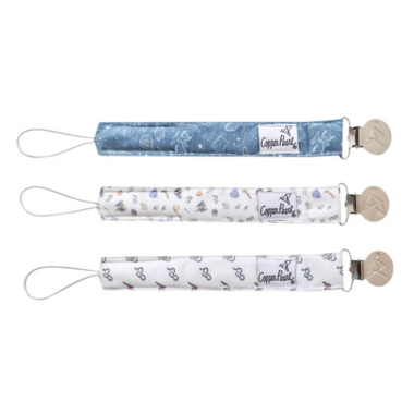 A chic way to keep baby's pacifier close at hand. Offering the ultimate blend of fashion and function, this unique Binky Clip features a premium knit strap lined with absorbent fleece to help soak up drool. Simply attach baby's pacifier or teether to one end, then fasten the clip to clothing, blankets or baby gear. Oh, and by the way this set includes three Binky Clips to keep with you wherever you go - no more floor drops or pacifier pick-ups!