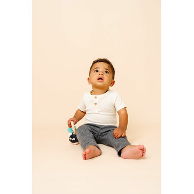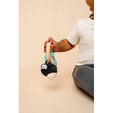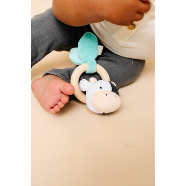 Designed for little hands, this pint-sized pal is easy for baby to grab. Made with supersoft fabric, this adorable stuffed rattle offers sensory engagement with a gentle bell sound and ultra-luxe materials.
