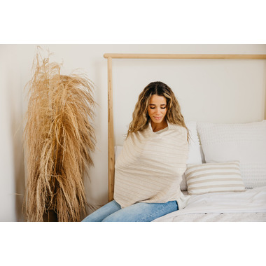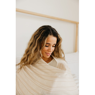 Copper Pearl multi-use 5-in-1 cover can be used as a car seat cover, nursing cover, shopping cart cover, high chair cover, and infinity scarf. This versatile cover is made of a high quality, stretchy, rayon blend fabric. The modern, and trendy fabric offers your baby protection from the elements such as wind, rain, snow, and bright light. It is quick and easy to put on and take off but snug enough that your little one cant kick it off while nursing.