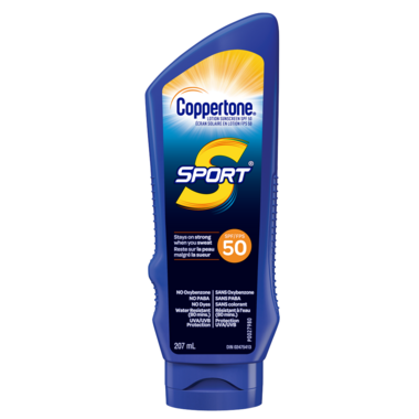 Stay protected from sunburns while you're active with Coppertone Sport sunscreen lotion. Apply this lotion for sport-ready SPF 50 protection with a formula that is lightweight, breathable, water-resistant, and stays on strong while you sweat.