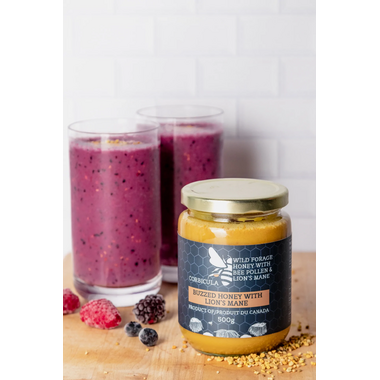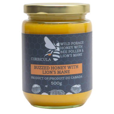 Corbicula Buzzed Honey with Lion’s Mane is wild forage honey with bee pollen and Lion’s Mane that is locally and responsibly sourced.
