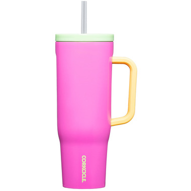 Corkcicle's largest straw cup to date keeps 40 oz of your favourite beverage cold for 20 hours, features a new dual function spill-proof sip + straw lid, a comfy soft grip handle AND fits in most cupholders.