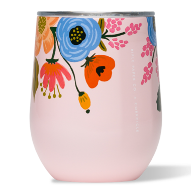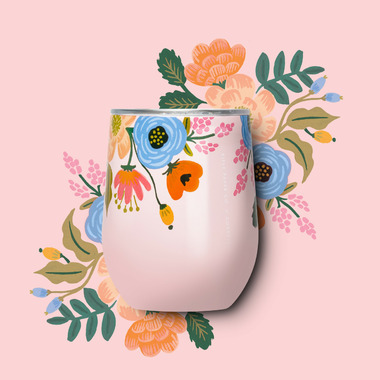 Perfect for picnics and summer days, this Corkcicle Rifle Paper Stemless in Gloss Blush Lively Foral print pairs Rifle Paper Co.'s signature Lively Florals with Corkcicle's innovative triple-insulated design. Enjoy your favorite beverage chilled for 9 hours or warm for 3.