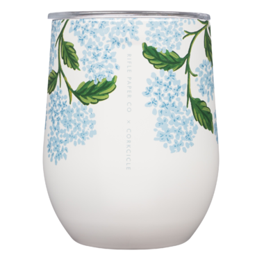 NOW IN BLOOM. Bring your favourite garden florals wherever you go with the newest Rifle Paper Co. x Corkcicle release. Hydrangea features clusters of delicate, elegant blooms that flourish in a fresh, pastel colour palette that was made for springtime. As an added bonus, these new items are dishwasher safe for easy cleaning.