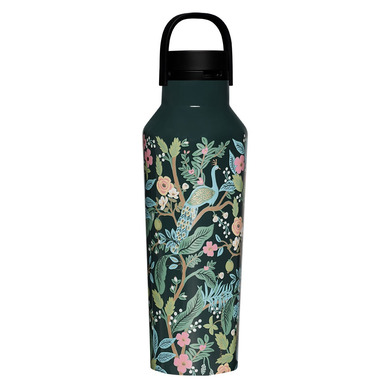 Includes a wide mouth for ice cubes, and a stay-put, silicone bottom with the signature, flat sides. Triple-insulated with a metal loop on cap. BPA free.