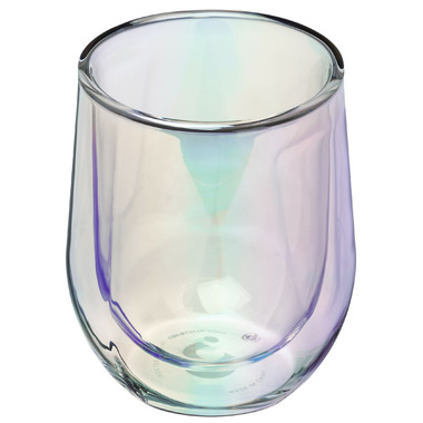 Rated 5 out of 5 by from My first well.ca purchase I love these glasses. The slight iridescent makes them so pretty and fun. They are the perfect size, and the lip feels good to drink from. There is a flat edge to the glass for comfort grip. The double lined glass helps keep your white wine cold without the glass sweating (I haven’t used for hot beverage but apparently you can). Comes in a set of two but I might have to buy more. They were packaged perfectly with no worry of damage. Very happy with my purchase.