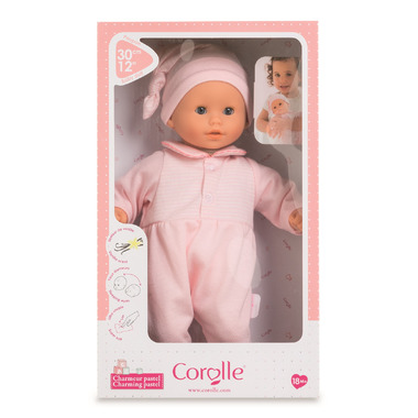 Bebe Calin Charming Pastel is a 12-inch baby doll - the perfect size for little mommies and daddies to rock and cradle in their arms. The doll's soft body is posable like a real baby and she can even suck her thumb. Her face, arms, and legs are made of touchable, soft vinyl that is delicately scented with vanilla - a Corolle signature - so that the hugs children give their doll are as sweet and memorable as the hugs their parents give them.